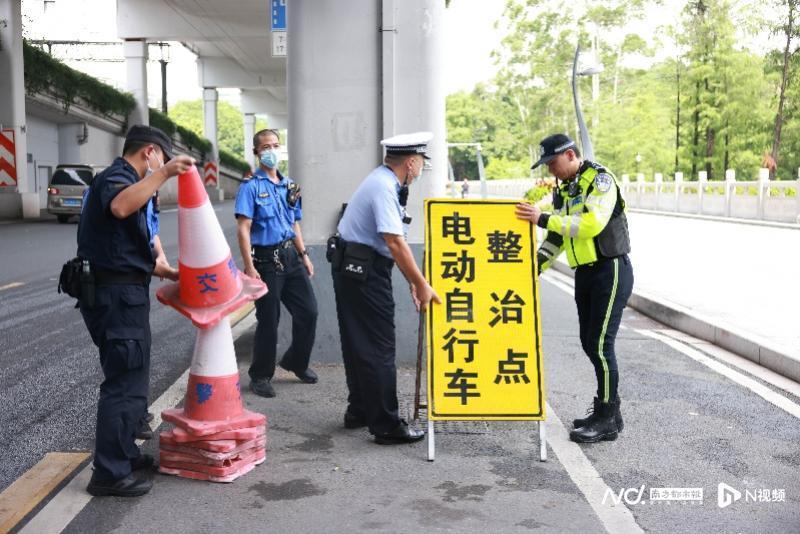 7月3日,广州交警在越秀区大北立交设置的电动自行车整治点。南都记者 吴泽嘉摄